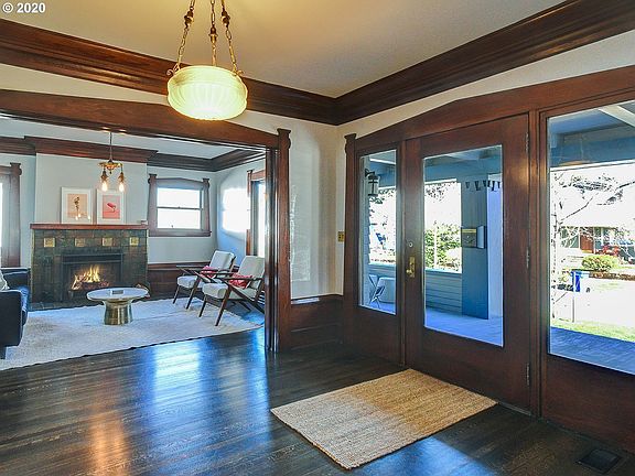 Historic 1916 foursquare with original woodwork & beautifully restored, updated & remodeled throughout in 2015. Gourmet kitchen with high-end appliances & unique butler's pantry offers tremendous kitchen storage. Main floor bedroom doubles as family/media room. Four bedrooms up with lengthy sun-porch. Master suite has a wood-burning fireplace & a beautiful new contemporary en-suite bathroom. Two-car garage with attic space. Excellent location close to some of Portland's best restaurants. [Home Energy Score = 1. HES Report at https://rpt.greenbuildingregistry.com/hes/OR10183020]