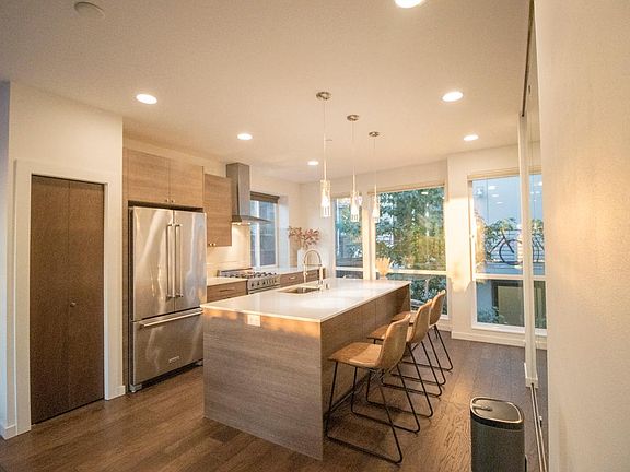 Modern luxury townhome in Phinney Ridge, right across from the Zoo! (Best unit on the property, private fenced in back yard and views of the Olympics). Fantastic 3 Bed 2.5 bath in highly desired Phinney Ridge neighborhood. AC/ HEAT throughout. 1st floor has front load new washer/ dryer, 2 bedrooms 1 full bath and large sliding door to private patio. 2nd floor has large living room with vaulted ceilings large windows with powder room, large sliding door with deck. Kitchen is a chefs dream! Kitchen has all brand new stainless steel Kitchen Aid fridge/dishwasher and large Bertazzoni 5 burner gas stove, Quartz countertops as well as pantry and all soft close drawers/ USB outlets throughout. Third floor is a large hallway leading to a beautiful master bedroom with walk in closet (designed by californa closets) floor to ceiling window overlooking the Olympics (Entire house has custom top/down bottom up blinds with blackouts in the master). Large two sink master with large walk in shower with two shower heads, floor is heated all throughout the bathroom! HUGE fully finished rooftop with lights/ electricity and gas line. Overlooking an amazing view of Ballard/ Olympics. Security system installed/ unit comes with Nest doorbell camera. This million dollar property will not disappoint. Available November 1st, but can be flexible 1 week before. 12 month lease Owner pays for: water, sewage, gas, electricity and trash