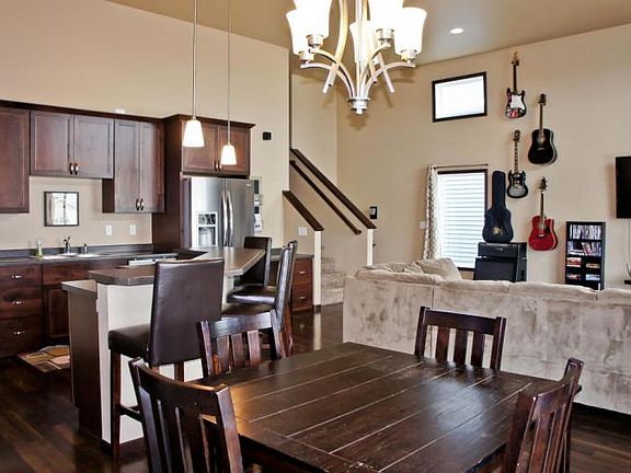 Like new in Osgood! Tall ceilings, Transom Windows, Beautiful dark & light contrast trim & doors throughout. Corner pantry & 2tier island in kitchen w/SS appliances. Built-in desk area. Laundry UPstairs! along with Master suite, 2nd bedroom & 2nd full bath. 3rd bedroom, bath & nice size family room down. Large foyer with coat closet. Insulated garage w/floor drain. Finished yard & deck!