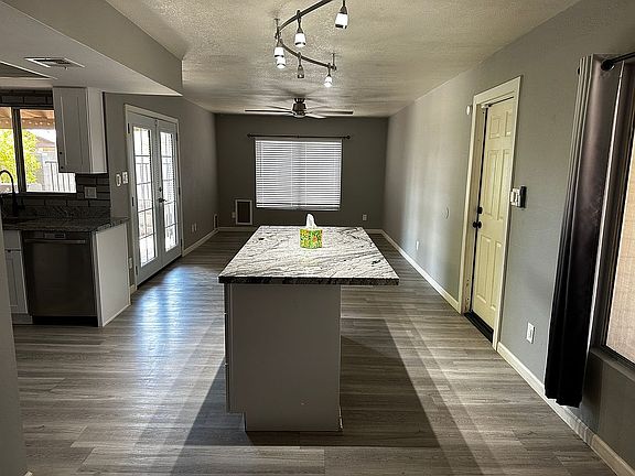 - Kitchen Features: Kitchen Island, Dishwasher, Disposal, Built-in Microwave, Range/Oven Elec, Non-laminate Counter