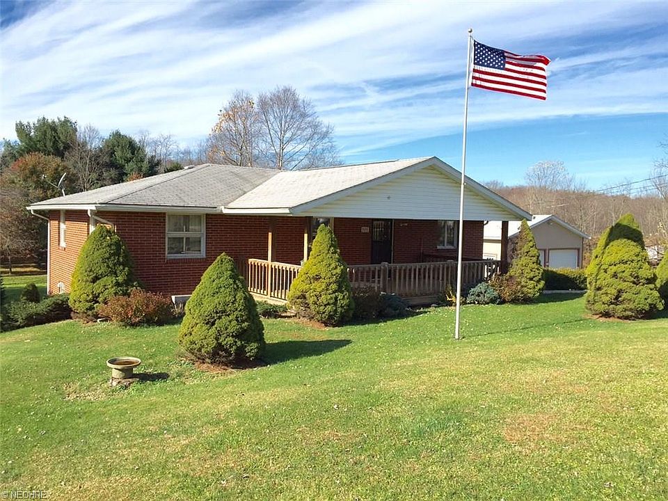 Charming brick raised ranch situated on 1.3" acres on 2 lots with 1 car garage underneath and 2 car detached garage. Home has large living room w/wb fpl and spacious eat-in kitchen, bedrooms with hardwood floors, and remodeled bath. The detached garage built in 1980 boasts a wrap-around deck, propane-heated back room, french doors to deck, and oversized 2 car space. Walk-out lower level with with full bath, workshop area, laundry tub, opens to fenced area and covered porch overlooking deep back yard has w/mature trees. Located on old Waynesburg Drive with easy access to SR43 and SR30. Home qualifies for $0 down Rural Development Financing. Won't last!