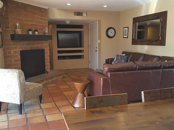 A rare midtown GEM! This beautifully updated & maintained brick home is both child & pet friendly & ideal for entertaining. The front courtyard offers privacy & maximizes outdoor living space. The backyard oasis, with grass and mature trees, offers a charming porch, fire pit, pool & Ramada. Updated kitchen has granite tile counter tops, recessed lighting, a breakfast bar and recessed refrigerator. The living room boasts a motorized Roman shade, ceiling fans and a fireplace. This home is conveniently located and close to EVERYTHING, including TMC, a top rated K-5 charter school, restaurants and shopping. This is a MUST SEE!! ( Note: Listing agent is related to the sellers)