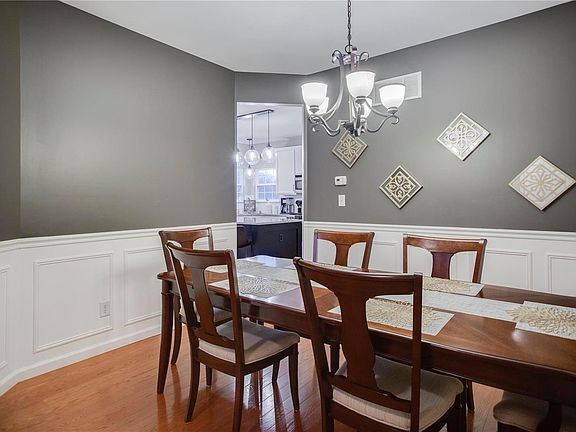 This beautiful home is full of amazing features and move in ready! The updated kitchen has beautiful granite countertops, custom lighting, large center island & stainless-steel appliances. The eat in kitchen is full of light from the bay windows with slider that leads to a lovely deck. The entire main floor is open and easily flows from kitchen to living room, separate dining room and office area. The master suite is upstairs with jetted tub, shower and double vanity. Three additional bedrooms are all generously sized with walk-in closets. You will find more living space in the lower level with the custom bar featuring granite countertops and wine cooler, additional sleeping area with full bathroom and recreation room with walk out to the backyard. New carpet upstairs in 2023. Hot water heater, water softener and filtration system installed 2020. Oversized 3 car garage with main floor laundry. Lot adjoins common ground & is located on dead-end cul-de-sac.