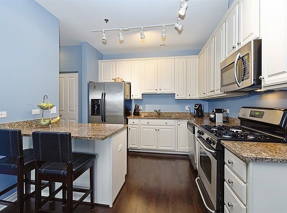 Move right in to this like-new 2 bedroom/2 bathroom condo in The Atelier. Although located on a bustling intersection this unit is incredibly serene and quiet- it faces west overlooking the building's outdoor space and the historic Manor House. The generous floor plan features a gracious entry, living/dining room with a ventless gas fireplace and adjacent balcony and a cook's kitchen with granite counters, stainless steel appliances and a generous breakfast bar. The master bedroom is enormous with a custom fitted walk-in closet and huge master bath with double sink vanity, soaking tub and separate shower. There are hardwood floors in the foyer, kitchen, living/dining room and carpeting in the bedrooms. Full size in-unit washer-dryer. Heat is included in the assessment and it's a dog friendly building. Deeded parking space #75, additional $25K. Extra storage off the garage. Enjoy Bryn Mawr Historic District, lakefront living, Andersonville, great public transport. The best of City livin