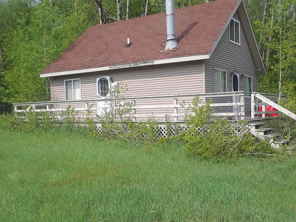 Just what you have been waiting for an affordable Handyman special. Home needsnew shingles and new well. Upstairs has newer drywall and painted {no closets yet}Storage shed in back. Home is sold as is no guarantees or warranties. Seller said the only place noticed leaking was around the nice brick fireplace.
