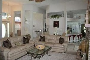 This beautiful 4 Bedroom 2 1/2 bath pool home has lots of upgrades. It features a den with a tiffany dome light in the ceiling and crown molding. Lots of tile with 10' and 12' ceilings throughout the main living areas. Pride of ownership is everywhere.Home is very warm and the open floor plan and huge lanai make it a most enjoyable place to live. Two sets of sliding glass doors open to a spacious lanai where you are met by a gorgeous swimming pool. There is a mosaic of a dolphin on the bottom of the pool and a dolphin statue overlooks the pool and faces the house. Large master bedroom features two walk in closets and a glamorous master bath with raised vanities, jetted garden tub and a large custom shower. The kitchen features a large eat in area and there is a formal dining room. The lawn is immaculate as is the home. This home has it all; neighborhood, location, curb appeal, and much more. Have to see to appreciate.
