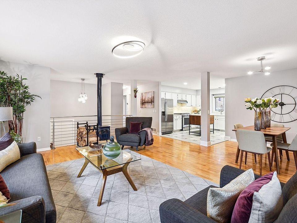 Explore this completed updated home w/ Attached 2-Car Garage, Built 1985! The open kitchen beckons w/ walnut Room & Board island, stainless appliances, wine fridge & 2nd sink in mudroom. Stay cozy in the large living room w/ wood-burning stove. Step out to deck & blue stone patio for outdoor enjoyment and relaxation. Main level: 2 beds, updated bath. Lower: family room w/ barnwood wall, 2 beds (1 w/ egress window), ample storage. Lower bath: walk-in shower, abundant space. Laundry in storage room adds convenience. All trim freshly painted past. Modern comfort & timeless design in one.