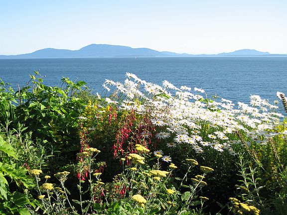 YOUR OWN 73' OF PRIVATE BEACH! SOUTHWEST FACING beach house fronting on the Straits of Georgia!! One level house with fabulous water views, 1158 sqft plus newly enclosed 1 car garage, decks front & back, BIG windows, fireplace. PLUS, detached 2 car garage with 480 sqft of cozy finished studio/office space over the garage with propane free standing fireplace. Watch soaring eagles, fishing boats & sail boats, spectacular sunsets. Hunt for agates on your beach; listen to the quiet!
