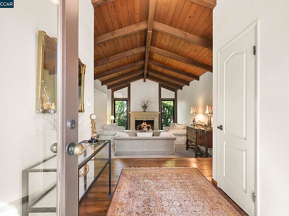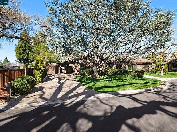 Located on a quiet court overlooking a majestic oak tree. This ranch style home has much to offer including privacy and plenty of space to entertain both inside and out. Cool off on hot summer days in the sparkling pool or enjoy the shaded sitting areas. The entry has high ceilings and frames a large living room with a custom stone fireplace and a beautiful wood ceiling. Dine in the formal dining area or more casually in the breakfast nook. The kitchen is light and bright with plenty of storage, white cabinetry, double oven and a convenient center island. Decorative beams flow through to a cozy family room with brick fireplace and a wet bar. Don't miss the spacious den or bonus room, perfect for movie night or large gatherings. Wine enthusiasts will love the temperature-controlled wine storage room too. The primary bedroom has a slider to the rear yard. The hall bath was recently remodeled, and the 4th bedroom makes the perfect study or office. Other features include Anderson windows & doors, mirror closets, plantation shutters and solid oak floors in the hallway. There is a large storage shed in the backyard plus lemon and fig trees. Close to elementary, middle & high schools, walking trails & Mount Diablo Park, makes this an ideal location.