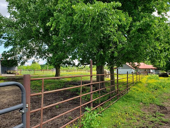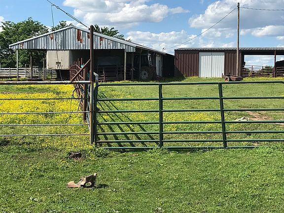 Ranch style home built on 160 acres. Man-made 10 acre pond (stocked with fish) behind the house. The land is fully fenced with some cross fencing with pasture for cattle and horses. Fenced pens. Two barns with full electric, cement floors. Several out buildings for storage. Small building by the house with electric. 24 x 40 carport.