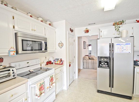 RED 2,900!Qualifies 100% Usda Financing in move in ready! Light and cheery from the moment you walk into foyer and into beautiful living room with vaulted ceiling with gas fireplace! Kitchen with pantry, built in microwave, glass top stove & refrigerator that could stay with acceptable offer! Breakfast bar plus breakfast room overlooking wonderful backyard. Dining room with chair rail. Owner suite with tray ceiling, walk in closet, upgraded ceramic tile floor, dble sink vanity, soaking tub & separate shower! Plus 2 spacious spare bedrooms. Plus 2 car garage with plenty of storage space!