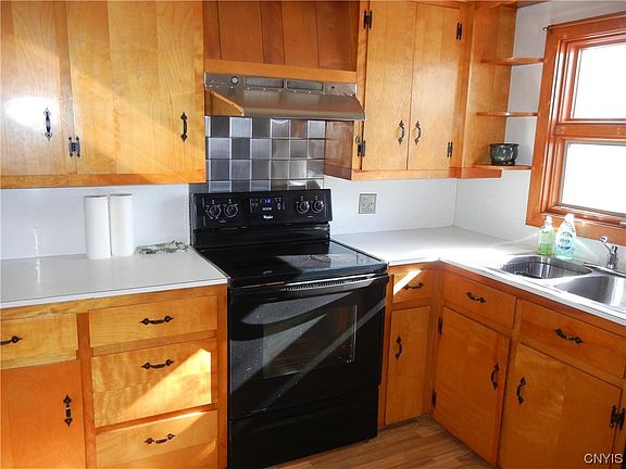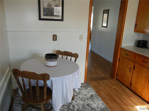 This well-maintained village home consists of a charming, heated front porch, and a first-floor bedroom and full bathroom. The first floor also has a formal dining room. An eat in country kitchen adds to the charm of this home. It has had numerous updates in the last few years including new doors, several new windows, new flooring throughout first floor and a new full bathroom on the 2nd floor. You will also find two bedrooms on the second floor with built in wall units for added storage. New flooring in the upstairs bedrooms was installed in May 2023. The downstairs and entryway off of the driveway just received a fresh coat of paint that really brightens up the space. New landscaping including a stone patio that overlooks a terraced lawn completes this village property.