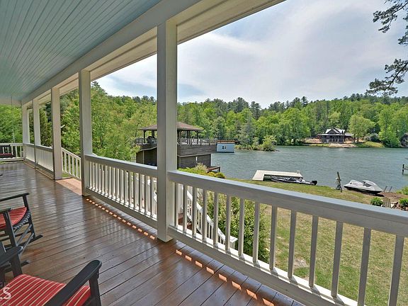 Enjoy Lake Burton this summer! Beautifully crafted with attention to every detail, this FEE SIMPLE, 3BR 2.5BA Cape Cod home has it all. The main level features a chefs kitchen, open floor plan, great room with stone fireplace, luxurious master suite, sun room, dining room for 12, separate office, powder room, wrap-around porch with screened area, Canadian hardwood floors with inlays, and 10 ft ceilings. Upper level has two guest bedrooms, oversized full bath, and a seating/TV area. The lower level features a large multi-purpose room and a spacious workshop area. Above the two car garage is a finished bonus room. The level lake front lawn and fire pit area provide plenty of room for fun and entertaining. Use the stationary swim dock for boats and water toys.