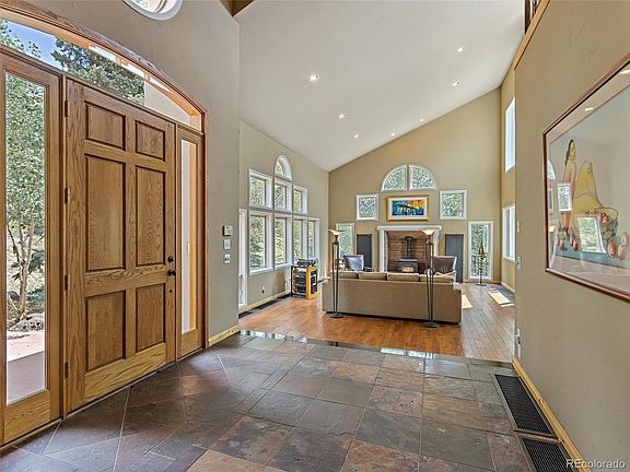 The views from this home are fabulous mountains and meadows abound. The home has been thoughtfully designed to take advantage of the views and the picture windows will make you feel like you're outside. This one owner meticulously maintained custom home sits on 14 plus acres and is minutes from schools and Highway 73. No detail was missed in the design with plenty of space to entertain, expansive decks with Mt. Evans views, multiple dining areas, massive primary bedroom space, shared baths for bedrooms on the upper and lower levels, a theater room, sauna and more! Check out the custom ironwork on the railings along the main floor and upper level. In 2007, the kitchen and primary bath were remodeled, the boiler and plumbing was updated and a new roof was installed. All south windows have been replaced with UV protected models. The house has sound proof walls, extra insulation and it is so solidly built the builder added an Air to Air Exchanger which circulates indoor air out of the home and circulates fresh air from outside. You won't be disappointed with the setting or the views.