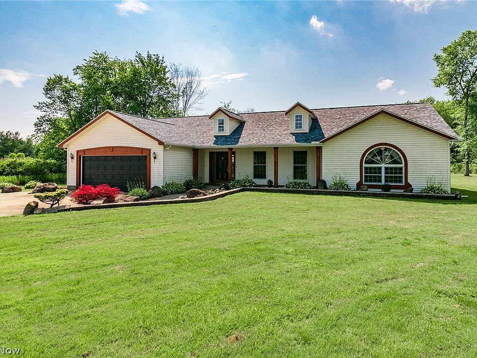 Welcome to your dream ranch-style home, nestled on a sprawling 8.9-acre property. This charming residence is complemented by a 2400 sqft outbuilding, both featuring newer roofs as of April 2022. Inside, you’ll find luxury vinyl flooring, two full bathrooms, a large kitchen island, and a newer washer and dryer purchased this year. The open floor plan concept creates a great space for family and friends, and is full of natural light from the dormer windows. The master bedroom features an attached bathroom as well as two closets. All bedrooms provide generous square footage and ample closet space. In the backyard you will find a fire pit and bluestone patio surrounded by a wooded backdrop. The pole-barn style outbuilding is a versatile space, ideal for business owners or hobbyists. It features two large bays with 6-inch concrete floors and 15-ftoot ceilings; an office, a bathroom, and attic storage. Don’t miss out on this unique property that blends comfort, space, and functionality. Make it your home today!