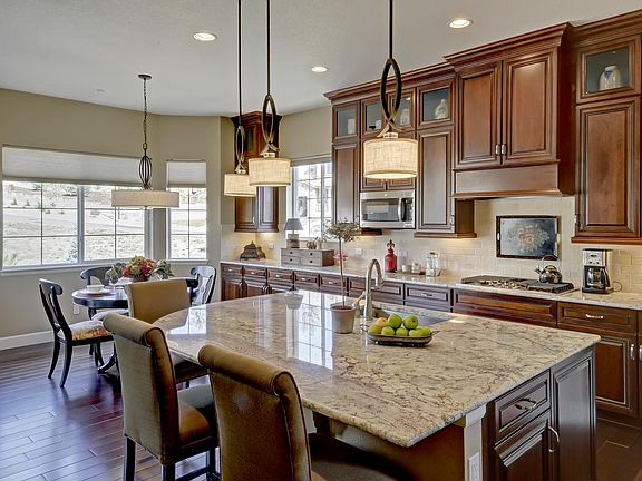 Living Areas are Spacious & Loaded w/ Thoughtful Designer Details*$97K in Builder Upgrades+$96K in Add'l Options*Stunning Wide Plank Hardwood Floors, Crown Molding & Plantation Shutters*Spacious Gourmet Kitchen w/ SS Appliances, Double Ovens, Farm Sink & Under Cabinet Lights*Slab Granite Counter & Rich Cherry Cabinets w/ Crown Molding*Center Island w/ Seating & Pendant Lights*Breakfast Nook w/ Bay Window & Access to Custom Outdoor Living Space*$35K in Professional Landscaping w/ Stamped Concrete Patio+Covered Patio for Year Around Enjoyment*Fin. Bsmt w/ Home Theater, Wet Bar & Multiple Rec Spaces for Pool Table, Ping Pong, Cards/Darts, Crafts/Hobbies, Exercise...You Name it!*Private Nanny, In-Law or Guest Casita w/ Separate Entry, Kitchenette, 3/4 Bath & W/D Hook-ups*Side Entry 3-Car Oversized Garage ($37K Builder Upgrade)*Large Lot Faces SW w/ Views of Pikes Peak & Sleeping Indian & Sides to Greenbelt ($33K Premium)*10 Ft. Ceilings & 8 Ft. Doors on Main*Fabulous Storage Thru-out!