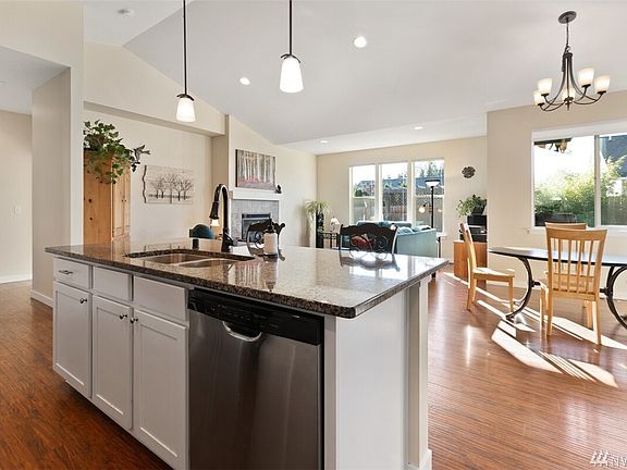 Beautifully maintained, bright and open 1 story 3 Bd 2 bath, lg master with ensuite& Lg walk-in closet, Freshly painted interior features durable laminate floors throughout, vaulted ceilings, gas fireplace, modern kitchen w/white cabinetry, granite countertops,Island seating,SS appliances, Enjoy the backyard oasis from your large deck beautifully landscaped & fully fenced, extra graveled area for camper or RV. Desirable Ferndale neighborhood, close to I5, property is NOT part of the HOA's!