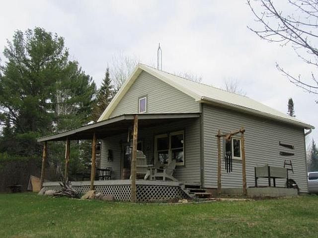 Well you have finally found it! Peaceful, lots of wildlife, waterfront, behind a locked gate, and no electric bills. This one bedroom cabin with loft, kitchen, living room, and bathroom was build from the trees that were cut and milled from the property. These is also a full basement. The Tomahawk river runs the entire length of the 40 acres. Nice sized front porch with a shed roof where you can sit, have your morning coffee, look out at the water and watch the wildlife. There is also a pole barn on the property, large garden area and another shed. Everything here that you need to live life on the "quiet side". This is totally off the grid with generator and gas appliances & lights.
