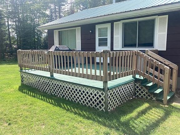 Eagle River Chain O' Lakes!!! Here's your chance to get on the chain without breaking the bank! This home features wide open concept with the kitchen, dining room and living room. Large full bathroom on main level along with main floor laundry. Beautiful yard with large deck and large concrete patio. Bring all your toys because there's 4+ car garage for all your toys. This home is located directly on the snowmobile trail and UTV trails! 3 Bedrooms on the main level with room to expand in the basement. Nice dock with space for multiple boats. This is a great investment and won't last long!!!! All offers will be reviewed by seller's on Sunday Aug 20th.