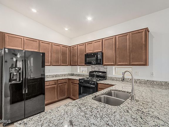 Welcome home to this beautifully maintained 5-bed, 3-bath single story residence in Mesa! Meticulously cared for inside and out, this home features charming curb appeal, a manicured yard, and a 2-car garage. Inside, enjoy vaulted ceilings, abundant natural light, a neutral palette, and a blend of tile and carpet flooring. The kitchen shines with recessed lighting, granite peninsula, and wood cabinetry. The generous main retreat is your private sanctuary, complete with a walk-in closet, double sinks in the en-suite bath, and a private exit to the backyard. The backyard includes a covered patio perfect for enjoying your morning coffee & a lovely flower bed. All of this is located within a welcoming community that offers access to a clubhouse, waterpark pool, fitness center, and more!