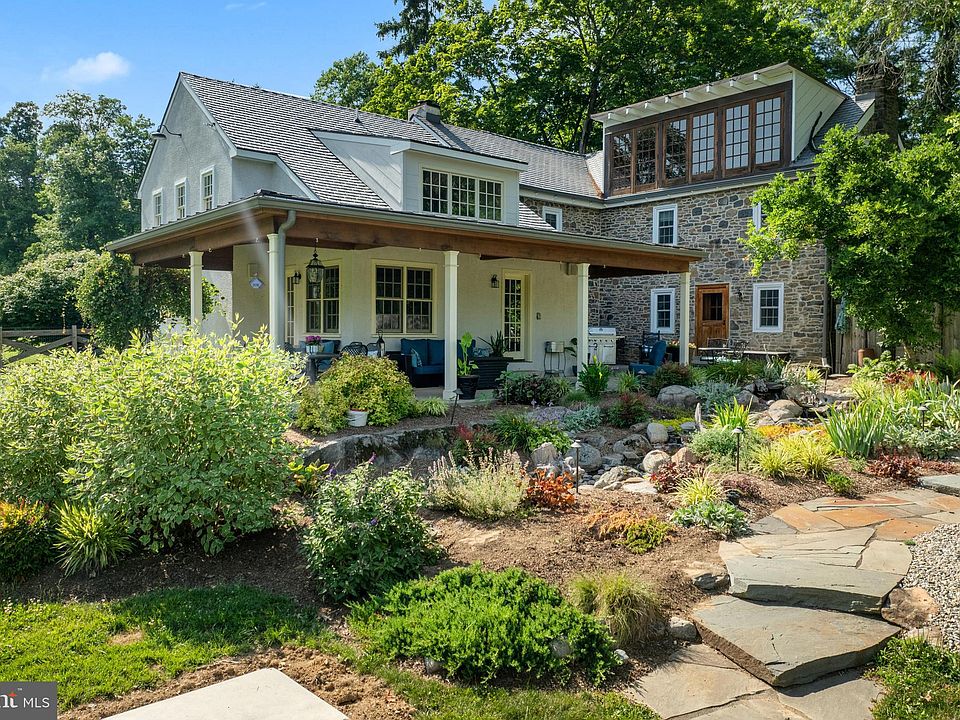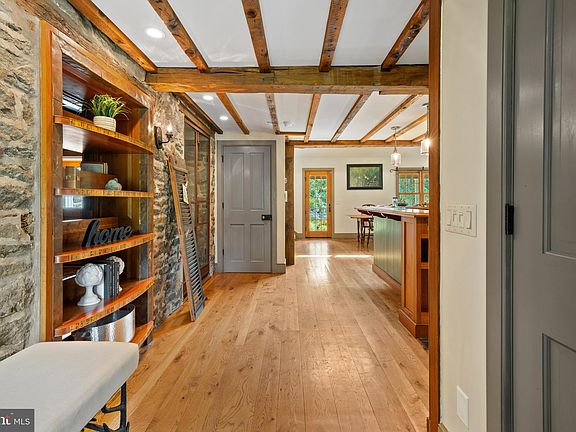 There is still time to move into this 1720 Farmhouse before the holidays! Imagine spending your holiday season in this magnificent home which offers a captivating blend of historical charm and modern luxury set on approximately 15 acres of picturesque fields and woods. Currently offering a $20,000 sellers assist! Embrace the tranquility of nature from multiple outdoor sanctuaries – whether it's the wrap-around covered porch, European-style courtyard featuring a soothing babbling water feature pond, or the inviting heated 50x25 saltwater pool, all surrounded by lush gardens. Recent upgrades such as the DaVinci faux slate 2-year-old roof with a 50-year warranty and new windows ensure energy efficiency and peace of mind. Inside the 4,944 square feet of artfully curated space, every corner exudes a warm ambiance enriched by original stone walls, exposed beams, and thoughtful design touches. The heart of the home is the open-concept gourmet country kitchen boasting custom cherry cabinets, soapstone countertops and sink, Wolf commercial range, Sub-Zero refrigerator, and Asko dishwasher, and a heated tile floor. It seamlessly flows into the breakfast room with its vaulted ceiling and loft, ideal for gathering with family and friends. Relax in the living room adorned with an industrial glass door, a walk-in fireplace with a Jotul stove, and a floor crafted from 19th-century Philadelphia Roofing Co terracotta tiles. The family room captivates with its Hearth Stone fireplace insert, artisan sills, stained glass panel, and pine floors showcasing a rich patina. Discover a serene library with black walnut floors and an elevated stone fireplace, originally a pub room in colonial times. Upstairs, three bedrooms and a laundry room await, with two bedrooms in the original section featuring fireplaces and rich wood floors. The second-floor bathroom invites relaxation with radiant floor heat, a glass shower, garden tub, artisan mirror, cherry counter, and double sinks. Additionally, two bonus spaces offer flexibility as an additional office, playroom, or hobby room. Ascend to the loft-like main bedroom sanctuary on the third floor, featuring wide-plank pine floors, custom ironwork, and three sets of French doors opening to views of towering trees, the pool, and a neighboring lake. Its boutique-style closet area includes a sitting area and open dressing/storage space. The uniquely designed bathroom boasts a stone and industrial glass shower, offering a serene bathing experience amidst treetops. The finished lower level provides two additional rooms that could serve as a man-cave, home office, playroom, or exercise room. Outside, ample south-facing open fields present an opportunity for solar panel installation. A 6-car detached garage, with two bays currently used as a gym but easily convertible back, offers plenty of space for vehicles and workshop needs. Recent upgrades ensure comfort and reliability, fence, widened driveway, including a multi-zone propane boiler, whole-house generator, well pressure tank, water filtration system, basement waterproofing, and an exterior French drain. The 2017 low-mound septic system further enhances the home's modern conveniences. Conveniently located just 2 hours from NYC, 60 minutes from Philadelphia, and 30 minutes from the Lehigh Valley, this home beckons with its blend of historical grandeur, artistic elegance, and modern comforts. Whether for a weekend retreat or a lifetime sanctuary, this farmhouse offers a rare opportunity to live amidst history and luxury.