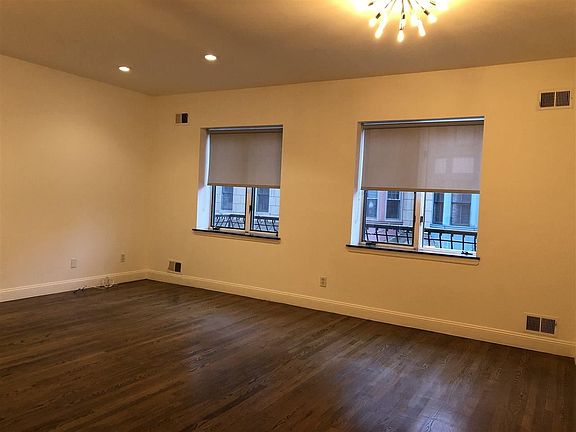 Very spacious apartment with oversized living room and both bedrooms. Just one flight up and windows on both north and south side for good natural light. Just renovated with new kitchen tiles, new designer lighting, LED bathroom mirror, refinished hardwood floors, and freshly painted. Large living room with open design to full featured kitchen complete with granite countertops, stainless steel appliances, and center island. In unit laundry, closet organizers, window treatments, central air conditioning. Great First Street location with EZ PATH commute, bars, restaurants, shops, and conveniences. Immediate occupancy preferred.
