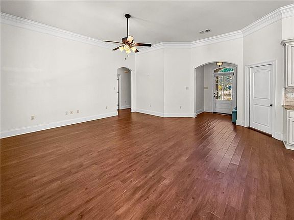 Easy living in Eagle Landing starts here with an open layout, great natural light, and spaces designed for everyday comfort. The home features a bright living area, stainless steel appliances, granite countertops, and a travertine backsplash in the kitchen. The primary bedroom offers an 11-foot ceiling, and the ensuite bath includes a garden tub, separate shower, double sinks, and a spacious walk-in closet. Enjoy outdoor living with a rear fence, covered patio, additional entertainment space, plus a storage shed for extra convenience. Eagle Landing is a charming neighborhood with sidewalks and underground utilities and is located in the Madisonville Lower Elementary and Covington High School districts, with convenient access to Hwy 1077, Hannan High School, Coquille Park, Rouses, and I-12.