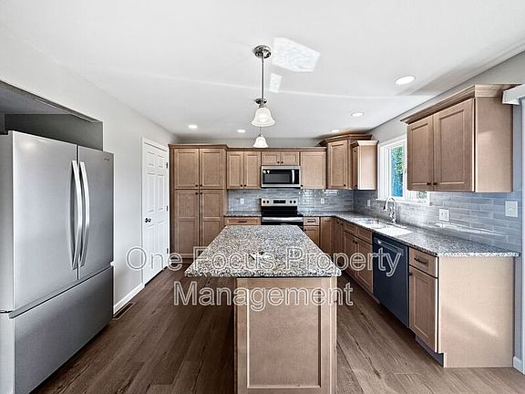 This stunning and upgraded townhome is a real delight! Coming in from the front, you are greeted by a large living room area with great windows that let in lots of natural light, and beautiful recessed lighting that accents the room. Next up is your eat-in kitchen, where you will find a substantial space for your dining table and chairs, and access to the deck area. You are also welcomed by a beautiful top-of-the-line kitchen with stunning cabinetry, a bar top that would easily host chairs, and incredible granite countertops. There is also access ot your half bathroom in this area. Upstairs, you will find there are three bedrooms that each have large closets, and your full bathroom that is outfitted with a full-sized bathtub and shower. There is access to the unfinished, but bright and clean, basement from the first floor, where you find the washer and electric dryer connections, and walk-out access. Please note the following for this home: No open flame grills are permitted on the upper deck of the home, only electric grills. No bird feeders or houses may be attached to the railing of the deck. Any TV mounts need to be approved and installed by the landlord. Residents are responsible for electricity, water, sewer, trash, and snow removal. Lawn care is included in the cost of the rent. Heat Source: Electric heat with central AC Appliances Included: Fridge, stove, dishwasher, microwave Laundry: Washer and electric dryer connections. Parking: 2 assigned spaces. Pet Policy: No Pets Permitted Minimum Application requirements: Minimum of a 600 credit score 2.5 times the rent in verifiable income after debt services Bank account verification. Do not submit any application for this home with or pay any fees or deposits to any party other than One Focus Property Management.