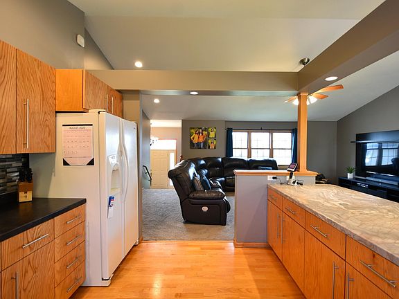 Must see this custom 1-owner 4bed/3bath oversized walk-out Raised Ranch on a generous-sized lot! So much to appreciate on the main level including the XL foyer, custom kitchen cabinets, vaulted ceilings, Master Suite with huge walk-in closet, and main-floor laundry with top of the line Speed Queen washer & dryer. You're going to fall in love with the lower level which boasts an incredible custom-built bar with mini-fridge, custom tongue and groove ceiling, super cozy gas fireplace with stone surround, and walk-out patio. Located conveniently on a quiet dead-end street, and just steps away from the city bike path!