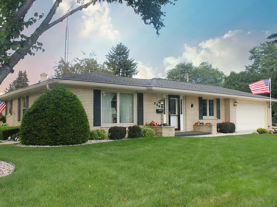One owner, well maintained brick beauty. Fantastic curb appeal. Spacious ranch with a great floor plan offers living room/ dining combination. Large eat-in kitchen includes appliances. Family room has beamed ceiling and wood burning stove. Bonus room can be used as additional family room or office space. Lower level offers partially finished rec room with dry bar. Get ready to fall in love with your backyard paradise. Large stamped concrete patio, garden shed, fenced yard and sprinkler system. Windows and roof appear to be newer. Water heater 7 years - furnace 16 years - Don't miss your opportunity to own this home before it's gone! New epoxy floor in garage and new concrete driveway.