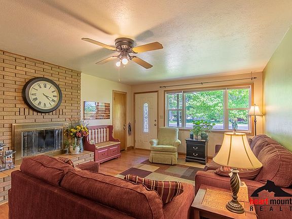 Great home in a great neighborhood close to elementary school & park. This move in ready home has 4 bedrooms & 2 baths, newer windows & a newer roof. It has a beautiful fireplace upstairs & a nice wood stove downstairs. Plenty of room to make a craft/sewing room for her or a reloading room for him. Nice fenced back yard with raised flower beds, storage shed, fire pit, covered patio & chicken coop.
