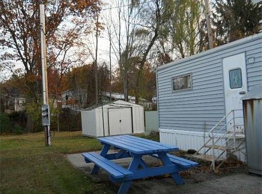 Mint Condition! One bedroom mobile home. Roof fairly new. All replacement windows throughout, new laminate flooring, freshly painted, step down living room, carport, lovely park. Park fees include water, sewer, trash removal and snow plowing. (Shed will be removed) SELLERS SAYS MAKE AN OFFER AND THEY WILL WORK WITH IT.