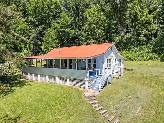 Searching for a place where nature grounds you and the stillness of the mountains soothes your soul? This charming 3BR/2BA farmhouse property has 7.58 acres (2 parcels) & sits between Waynesville & Sylva, NC. A sprawling front porch invites you to slow down, listen to the creek below, & enjoy the peaceful rhythm of country life. Watch the sunrise, sip coffee on the porch, sit by the fire pit, and let each evening end beneath a sky full of stars.The property features beautiful hardwood floors, mature trees, long-range mountain views, and multiple potential building sites. It's ideal for a summer retreat, year-round living, or a working homestead—grow your own produce, keep livestock, collect fresh eggs each morning, and build a lifestyle rooted in sustainability and the peaceful rhythm of mountain life. Enjoy easy access to hiking, fishing, golfing, shopping, and dining. With ample acreage for privacy and creativity, this is a rare opportunity to live your mountain dream.