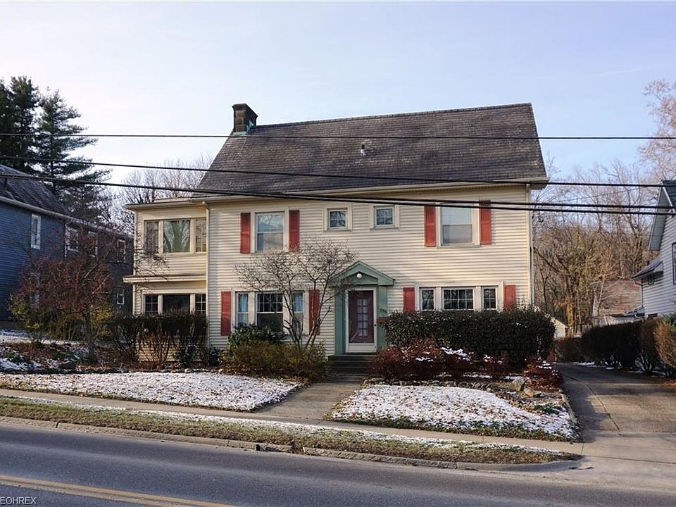 One of the Grand old Colonial Style's along Jackson Street! This 3BR-4BA approximately 3290 sq. ft. finished home, includes a 2-car detached garage and ample parking. While built true to the period, this home was modified some years ago with the removal of the center hall staircase. First floor features: A Stunning, walnut solid paneled walls, immense living room w/gas fireplace-marble surround, Original ceramic tiled floor sun porch-gas fireplace, formal dining room, spacious-fully equipped kitchen, M-BR addition with a 12x7 cedar lined closet, newer private M-BA (includes laundry area), another full bath, enclosed-heated porch/mud room and enclosed-unheated back porch. Enter the upstairs via a separate outside entrance and you will find: Kitchen w/laundry area, living area, 2 bedrooms, 2 bathrooms evocative of the period, huge sun porch mimicking the size of the one below and spacious entry foyer. A doorway in the upstairs foyer leads to the walk-up attic which could easily be finished. Full basement below is partially finished but time for a remodel there. Long used as an owner-occupied home on the first floor with rental income gleaned from the second floor, the time has come for this home to have a new owner. The decision is yours, whether to continue with living in the downstairs-rent out the upstairs or take the time to re-install the center staircase, returning this property to its full glory!
