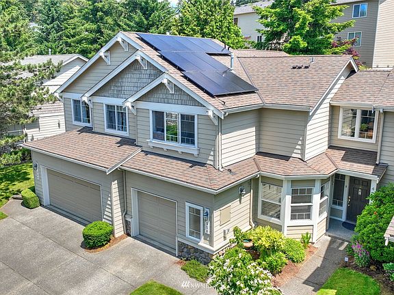 located in Blueberry Place. A quit private gated community in Renton Highlands. Soaring 20' vaulted ceilings W/a expansive wall of windows looking out to a large, private, patio area W/2 tiered lawn & garden space. New kitchen remodel W/updated quartz counters, new stainless appliance, natural wood cabinets & large Pantry. Hard wood featured thru out W/title in baths. Office/Guest Space provides great flexibility. upstairs: Main master W/vaulted ceilings & newly remodeled bath & Second Master & Laundry. New Solar Package provides over 90% of the electricity including the new furnace and tankless water heater.
