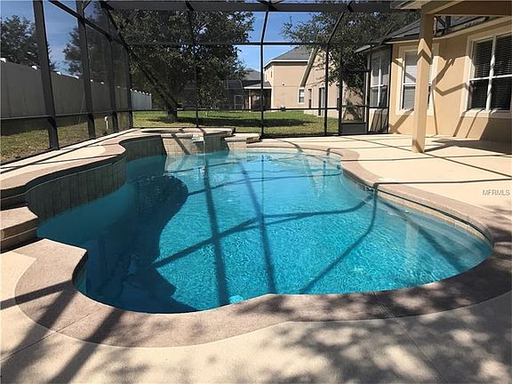 Spacious 5 bedroom 3 bathroom pool/spa home located in Errol Estates. Very accommodating floorplan and plenty of room for entertaining! The master bedroom is located on the first floor in addition to another bedroom and full bathroom with access to the screened lanai and pool deck. The kitchen overlooks a large family room and features 42" wood cabinets, granite countertops, stainless steel appliances, a large center island and a built in desk. The first floor also features a formal living and dining area in addition to eat in kitchen space and a large breakfast bar. On the second floor you will find 3 bedrooms in addition to a large bonus room and full bathroom. New carpet was just installed throughout the home and new lighting has also recently been installed. Outside a large covered lanai and screened pool deck are great for entertaining. The circular driveway also allows for extra parking space when needed. All offers are responded to within 24 hours if submitted with the attached addendum. Agent is related to the owner.