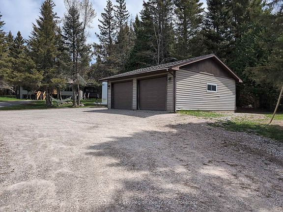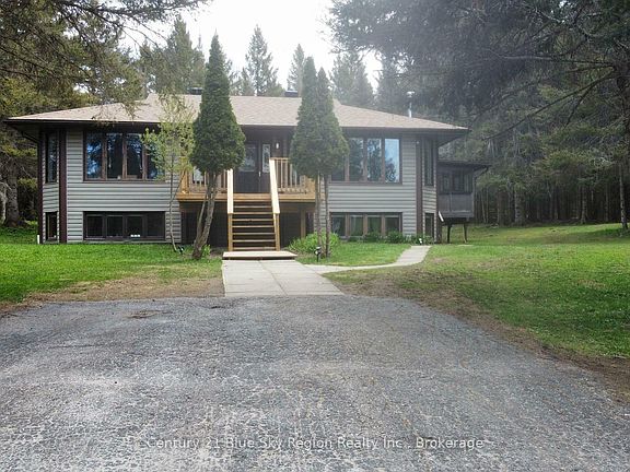 Your own little paradise on 10 acres. Only 5 minutes from Hwy 11, this 3 bedroom 1230 sq. ft. raised Bungalow features Central Air, full basement with Rec Room and 3rd bedroom with possibility to create a 4th bedroom. Primary bedroom with loads of windows for a bright atmosphere. 5 piece bathroom on main level. L-shaped Living Room/Dining room with eat-in kitchen. Lower level features bedroom, 3 piece bathroom, large storage / laundry room, Utility room and more. Large 24 x 24 Double car garage fits up to 4 vehicles. Replaced Shingles on home (2022) and Garage (2024). 2 Garden sheds.