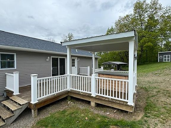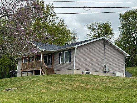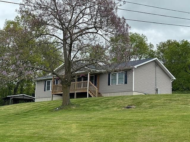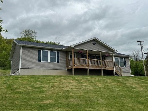 Beautiful ranch home on 2 acres with a great view from the front porch. Home features 3 bedrooms with walk-in closets & 2 full bath, modern kitchen with newer appliances & utility room. Step out to the back deck & onto the backyard with a picnic pavilion to entertain. Full basement ready to be finished. It has been walled off for an additional bedroom & a full bath.