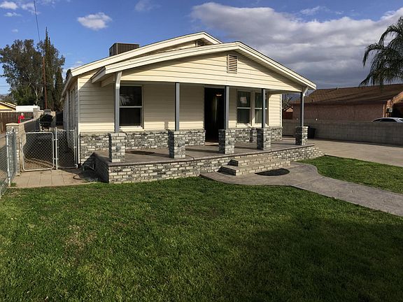 Loads of charm in Arvin. Large living/dining combo. Kitchen upgraded with beautiful counters with integrated sink, laminate flooring. Bath has tile flooring, tile shower, vanity with glass sink. Master has bamboo flooring, recessed lighting, oak built in closet. 2nd/3rd bedroom have built in oak closets. Washer/dryer hookups. Electrical and plumbing updated 2006. Windows updated 2014. Beautiful block wall with brick cap, brick veneer, stamped concrete porch/walkway completed in 2014. Sprinkler system front and back. Separate building ready to be completed. Alley access, 1 car carport. Buyers will not be disappointed.