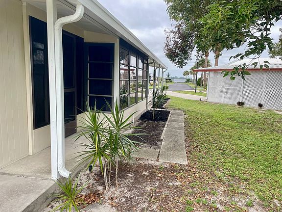 Hidden Cove West / Lot 556 / 2 Bedroom/2 Bath / 840 Sq. Ft. / $36,900.00 Located in this 55+ gated community, this home offers it all for an affordable price! This home boasts: A Metal Roof, Large Perimeter Lot, Views of Lake Henry, Freshly Painted Throughout, New A/C , New Energy Efficient Door, Florida Room with Vinyl Windows Refreshed Kitchen Cabinets, Electric Mower is included! This home is a must see on your tour of beautiful Hidden Cove West!
