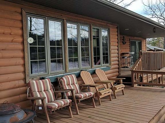 Gorgeous Waterfront Log sided Home offers incredible views of All Sports Smallwood Lake. This 1760 sq ft 3 bedroom 3 bath home is super clean and inviting. Enjoy the view of the Lake from the Living room with gas log stone fireplace or from the Kitchen with island sink and snack bar. Wake up to the view of the lake from the Master bedroom with private bath offers double sinks, whirlpool tub and walkin closet. Invite the family or friends for long weekends, large 3rd bedroom offers bath, separate kitchen and private deck. Sit and enjoy the outdoors from several covered porches. 30x40 garage with heat and electric is a man's must have. 2nd outbuilding offers great storage. This is a must see.