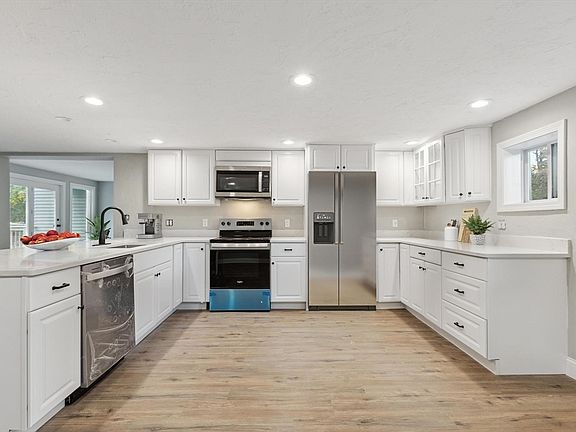 This spacious, newly renovated home is move in ready with 4 bedrooms, two baths, and a large updated kitchen. The living room offers lots of natural light with large windows and glass door opening up to the back deck and large fenced in backyard. Upstairs, the primary bedroom also has a private deck that overlooks the yard.
