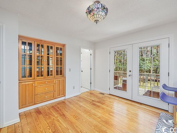 This warm and expansive home is a must-see for a large family or buyer looking to accommodate in-law living!! Located in the Fox Bay area, it is surrounded by mature trees and landscaping. The front has a welcoming appearance and features a sprawling front porch. The backyard is fenced-in and has a shed for outdoor storage. Stepping over the front door's threshold, you enter a spacious living room with newly refinished hardwood floors that continue into the dining area and kitchen. The dining area features a grand built-in hutch. Other first-floor features are a half bath, a bedroom and the On Suite with a walk-in closet. But wait, off the kitchen is a perfect room with ample shelving and space for an office, crafting, or sewing. Off the dining room, you will find double doors that lead to the deck and a private backyard, perfect for outdoor entertaining. Venturing to the second floor, you will find two additional bedrooms, another full bath, and a bonus room with a closet for extra storage. And yes, there is still more. An in-law apartment on the first floor towards the back of the home has a small deck and private entry that is handicap accessible. This space boasts a large living area, a small kitchen area, a laundry room, and a full bath with a walk-in tub. It has its own backyard space decoratively enclosed with white picket fencing. Don't miss this home in the quaint little city of Loris!!