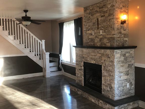 Large 5 bedroom home located in a quiet desirable neighborhood in Palmyra, PA. 2 minute drive to the square in Palmyra, 7 minutes to downtown Hershey, 13 minutes to Milton Hershey Medical Center, and 24 minutes to Harrisburg PA. Four minute walk to Northside Elementary School. The home has natural gas forced air heat and central air conditioning. First floor has been renovated with a gas fireplace and modern open kitchen. Stainless kitchen appliances and washer and dryer included. Nice fenced in yard, front porch and back deck, corner lot with small outbuilding in rear of property. Convenient central location.