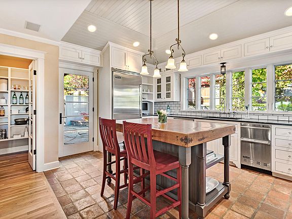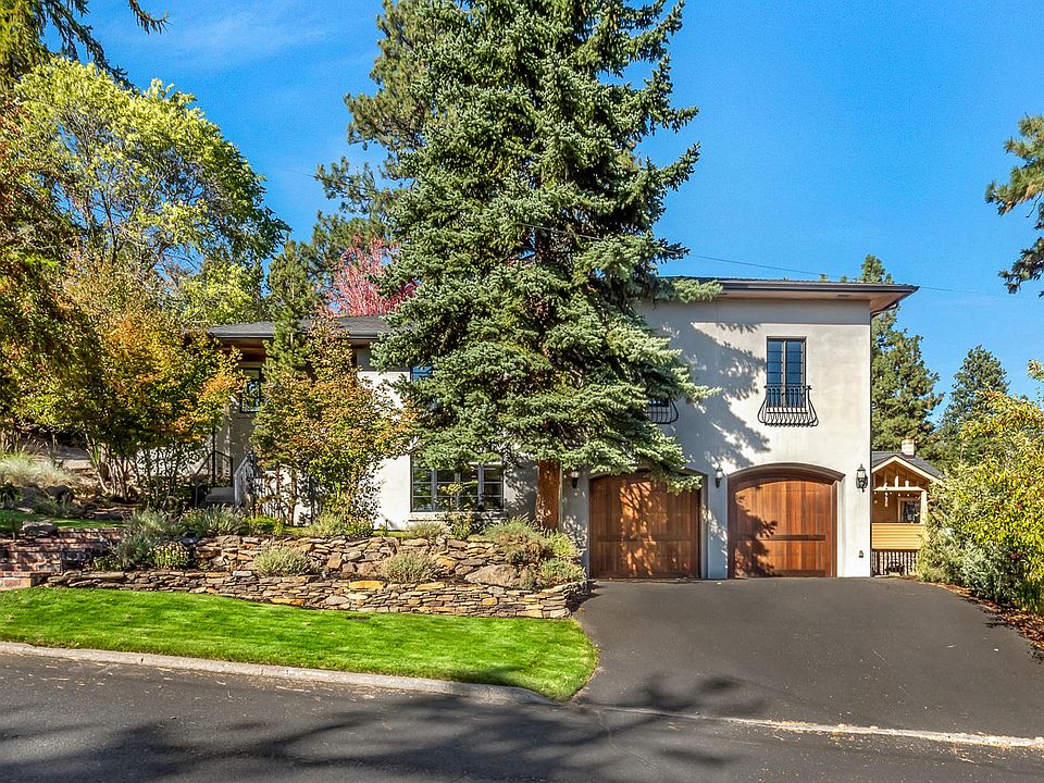 Private oasis in the heart of Bend's vibrant westside. Situated on a double corner lot, the property feels like a private estate, while also being within walking distance of the Deschutes River, downtown, and many of Bend's most popular amenities. The home has been seamlessly updated to combine modern luxuries with classic, timeless finishes. The main level features an open floor plan with a spacious master suite, built-in office, and 2 additional guest suites- each with an en suite bath. Bathed in natural light and overlooking the backyard, the chef's kitchen is a show stopper- complete with stone countertops, Viking appliances and butcher block island. The expansive outdoor space is perfect for entertaining, or as a tranquil retreat and the additional tax lot included and extra detached garage offer endless possibilities. Downstairs you will find a family/media room with surround sound, 300+ bottle wine cellar, plus additional flex space. Oversized 2 car garage with workshop.