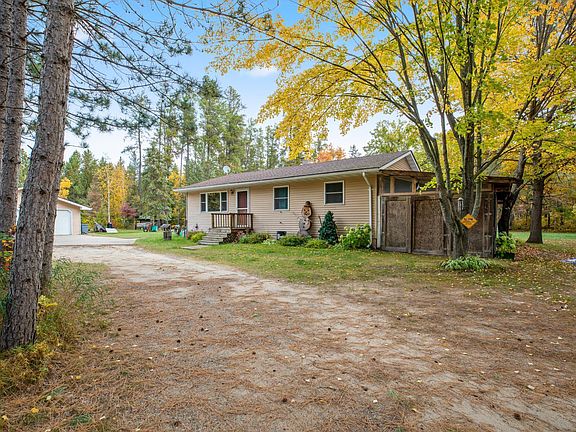 Welcome to 3 acres of wooded privacy, yet conveniently located close to town. Featuring one level living, 3 bedrooms, 2 bathrooms, and a 24 x 36 insulated and heated detached garage with a workshop. The property features a large private backyard with a newly stained deck, and screened in porch. You will love the large fenced in garden and lots of grapevines. There are walnut, apple, crab apple, and plum trees for you to enjoy. You will also enjoy deer, pheasants, and turkeys that visit from time to time. For added convenience, there is an intercom system from the house to the garage. The roof is 5 years old, and the septic system is compliant. If you are looking for privacy, convenience, and lots of nature, this is the property for you.