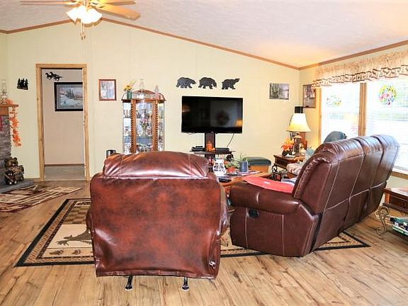 Clean and beautifully maintained home permanently attached and deeded on an acre of usable, flat, landscaped yard. Beautiful gas log fireplace and large floor plan with huge deck off the back and large, covered front porch. The tranquility of shade trees and road front privacy give this home easy accessibility to just about anywhere you want to go. Convenient, desired location. Large Master Bedroom with huge walk-in closet, ensuite with garden tub. Large metal shed is the perfect man cave/ workshop or supply/ storage shed. This property is perfect for investment, rental or a place to call home.