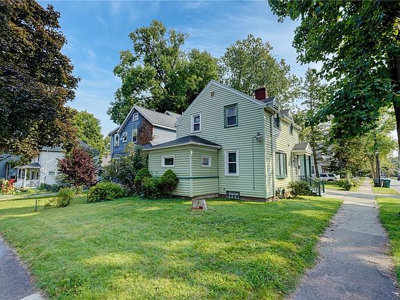 A Must See!! Convenient to Everything! Newly renovated throughout. All new flooring, paint, light fixtures, eat-in kitchen, new cabinets, brand new appliances (stainless) side by side fridge w/water & ice. Bath with bar height vanity with marble top matte black fixtures. 3 spacious bedrooms, with built-ins and large closets, fireplaced great room, den & dining area. Additional square footage reflected is for a porch. They used to be open and seasonal, which is now enclosed and year round. Tear off roof 2023, furnace 2023, central air, Thermopane windows, glass block windows in basement, double lot, vinyl sided & turn around driveway.