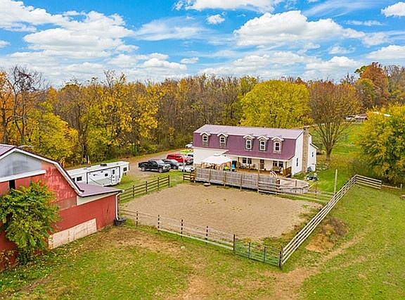 Bring your horses - Beautiful home nestled over 22 private acres - pride of ownership shows throughout - Updated kitchen with new luxury vinyl plank flooring leads to generous living/dining areas with new wall-to-wall carpeting. First floor includes laundry/mud room, guestroom & full bath. 2nd Floor boasts owners suite & 3 spacious bedrooms w/walk-in closets, full bath. Partially finished lower level just waiting for your special touch - could be converted into an apartment or future game room/home theater - Flexible space offers updated full bath, plenty of storage & future kitchenette - easily accessible with private entrance & access to attached garage. Entertain guests with heated pool or relax on deck with your morning coffee while watching your horses in the lush pastures. 5 stall barn complete with new roof offers water & electric w/fenced-in pastures & 2 riding arenas. Abundance of trails to call your own completes this magnificent property. Mins from OH, WV & PIT Airport