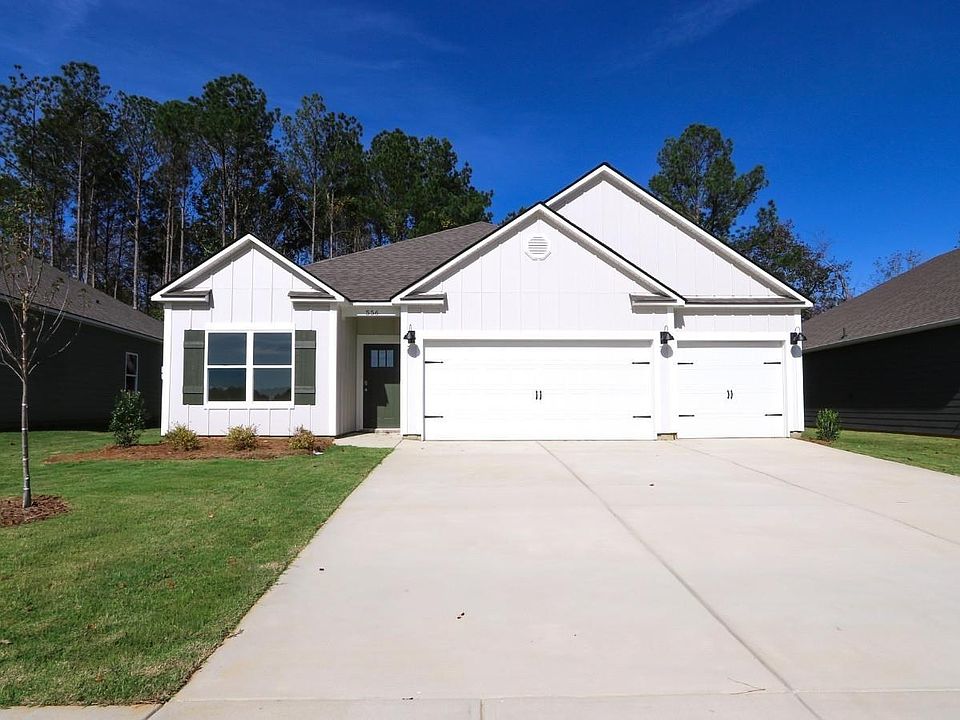 Ask about our interest rates, paid closing cost and easily added options. The gorgeous Madison plan presents a charming single-level home with 4 bedrooms, 3 bathrooms, a generous covered patio, and a 3-car garage. This home boasts a spacious breakfast nook, a separate dining area, and a large living area, creating an inviting open design perfect for effortless entertaining. The kitchen features a sizable island bar and a convenient corner pantry. Bedroom 1 offers ample space and is accompanied by an adjoining bath that includes a double vanity, a luxurious garden tub, a separate shower, and a sizable walk-in closet. Additionally, there are 3 other bedrooms throughout the home, accompanied by 2 bathrooms. Quality materials and workmanship throughout, with superior attention to detail, plus a one-year builder’s warranty. Your new home also includes our smart home technology package!